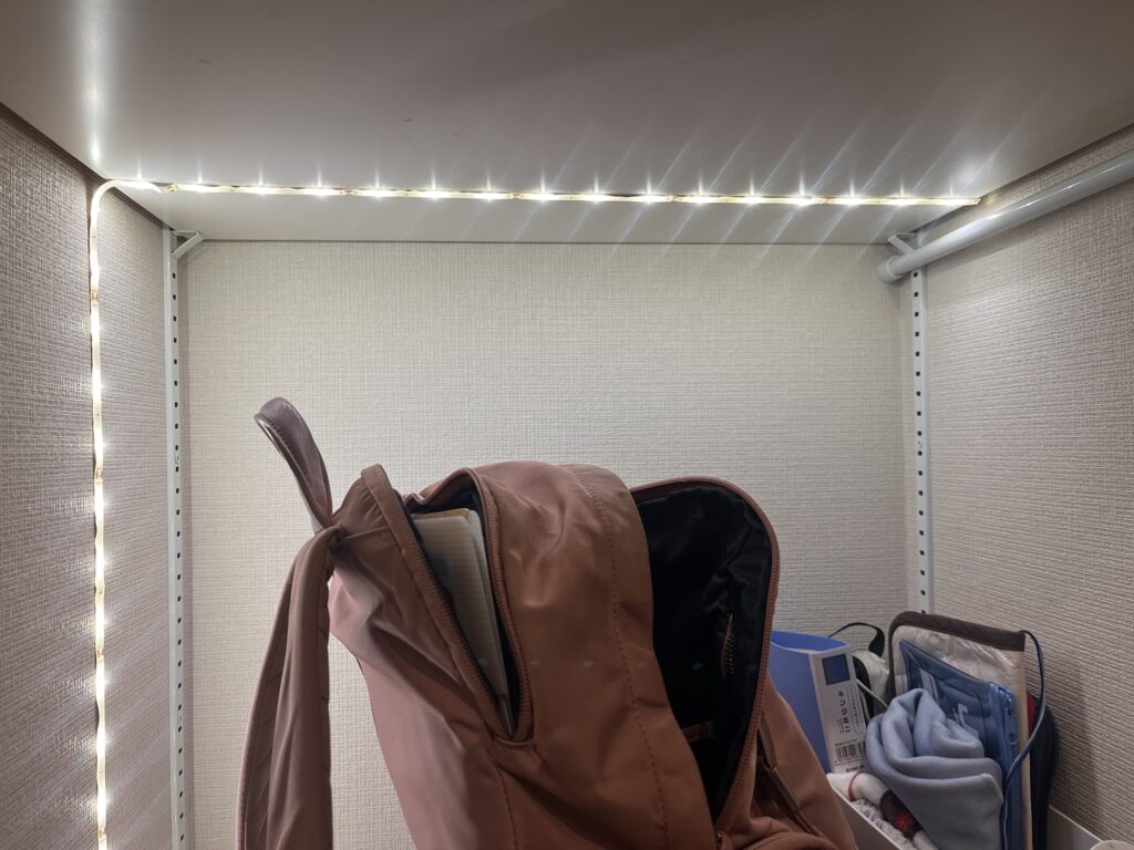 そこで、棚の中央にライトが来る位置をイメージして設置。