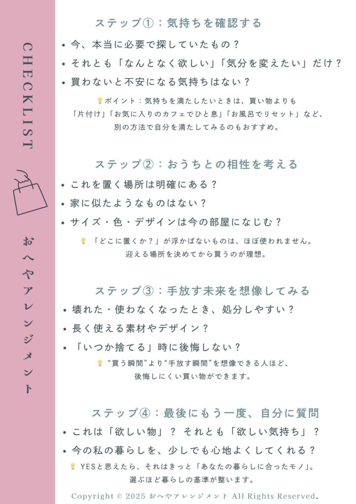 物が欲しくなってしまったら、こちらのチェックリストに目を通してみて。